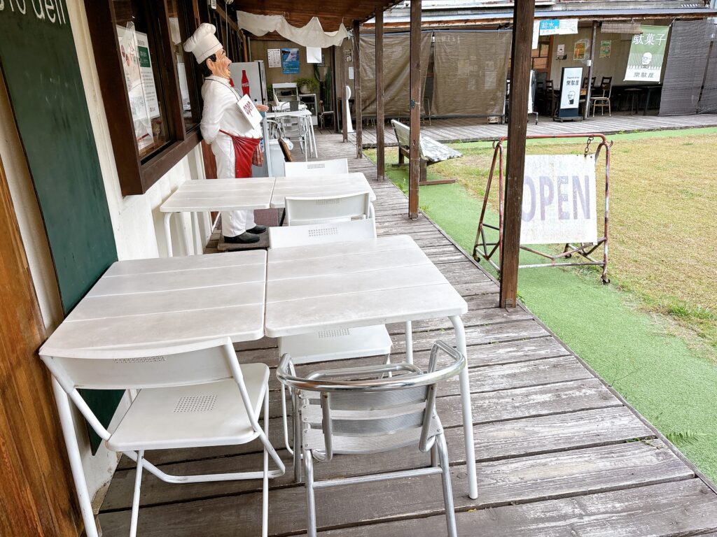 店内にイートインスペースはありませんが、外にテーブルが設置されており、そこで飲食が可能。