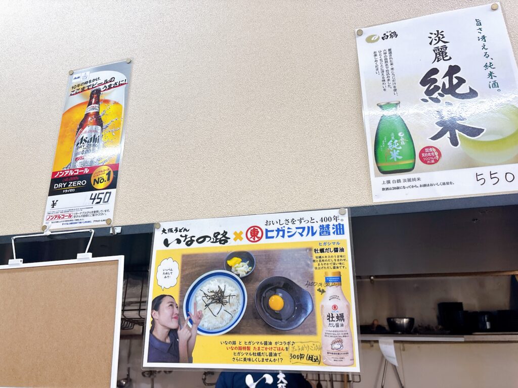 いなの路のメニューは、関西うどんの定番をベースにしながら、