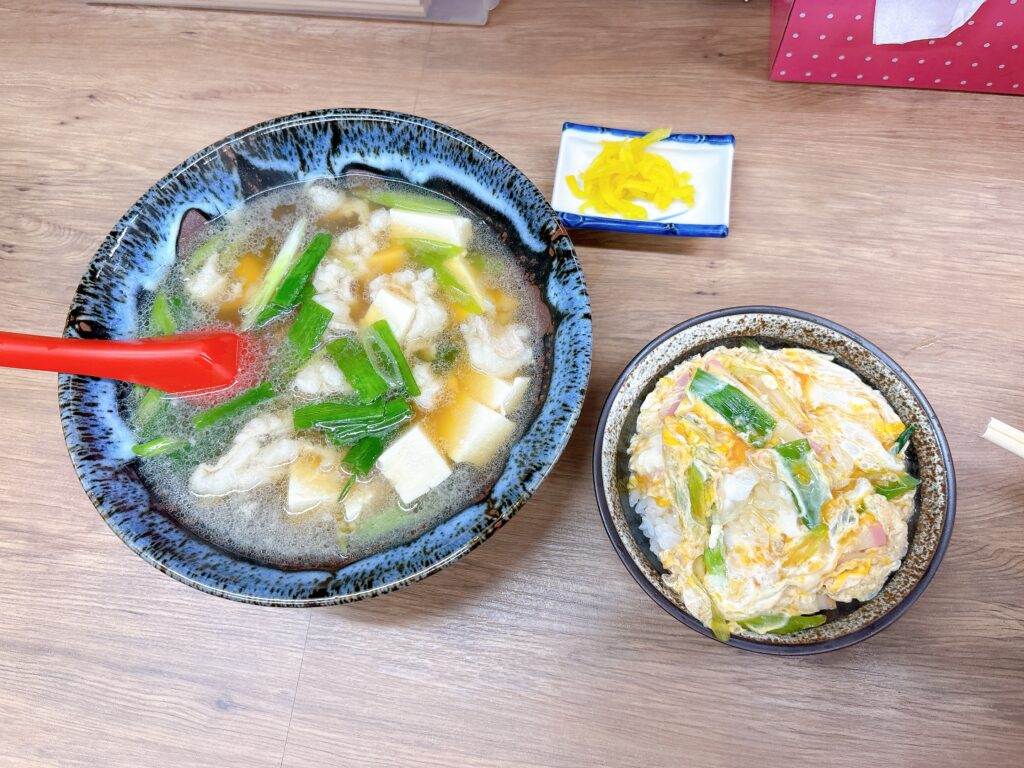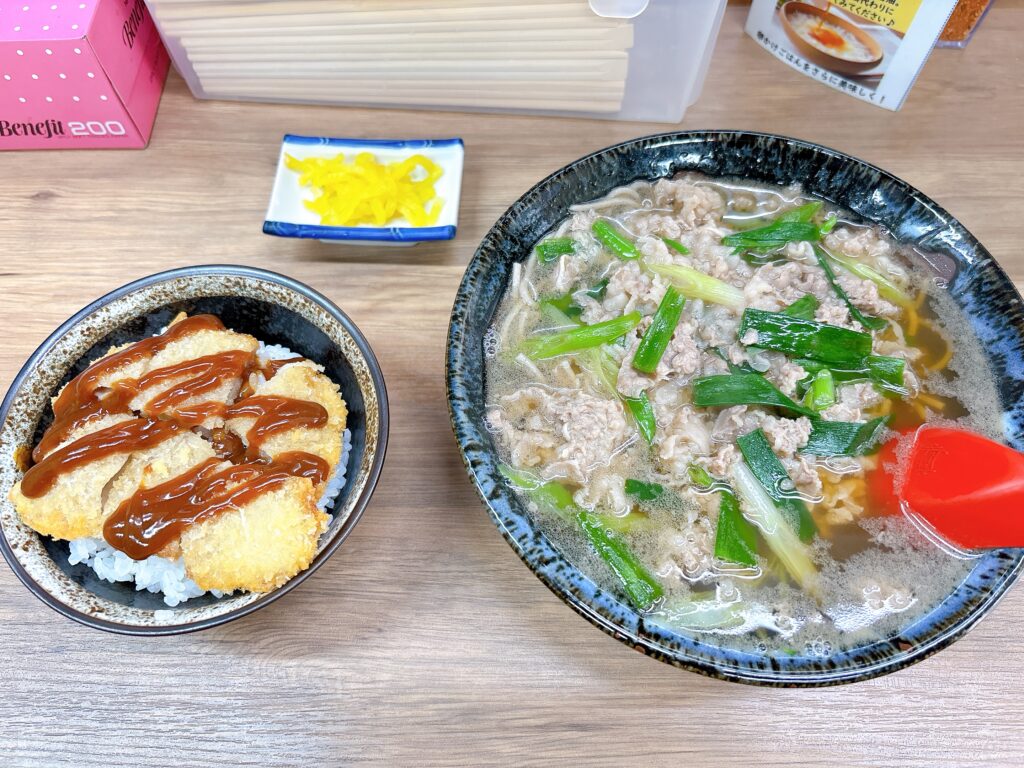 この日は「そば」の気分だったので、私は肉そばととんかつ丼を注文。