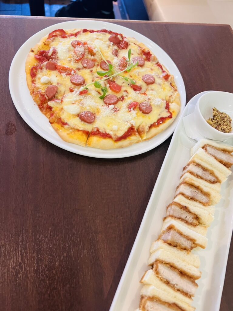 続いて、ピザとカツサンド。