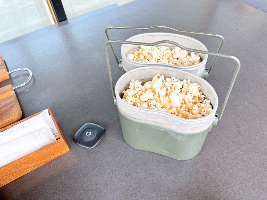 セット内容は肉・野菜・オニオンフライ・アヒージョ・ポップコーンなどのほか、さらにピザとパスタも付く充実した内容です。