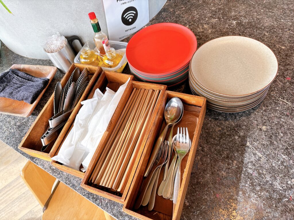 タバスコやオリーブオイル、取り分け用の小皿などもセルフで利用でき、スタッフを呼ばなくても気軽に味変できるサービスは、お客さんにとって使い勝手の良い工夫だと感じました。