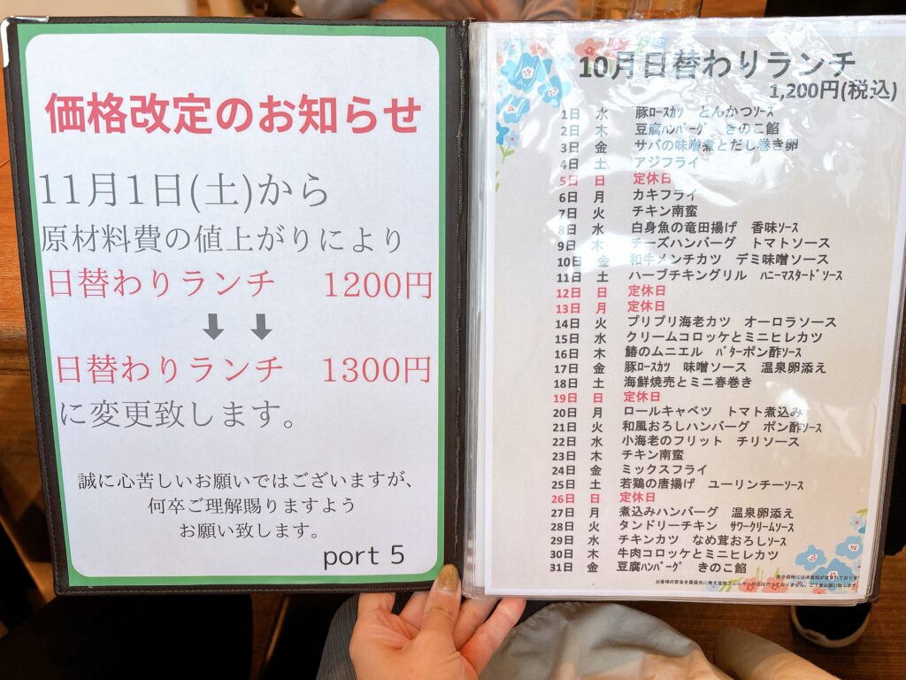 さらに、日替わりランチは毎月メニュー表が更新されており、持ち帰りも可能。