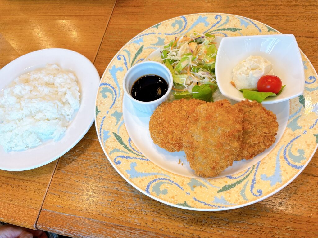 一緒に行った家族は“日替わりランチ(牛肉コロッケとミニヒレカツ)”を注文しており、一口分けてもらったところ、外サク中ほくほくでこちらも絶品。