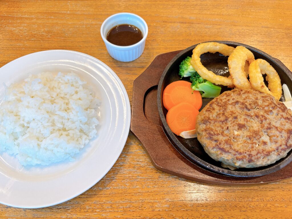 添えられたオニオンリングもサクサクで美味しく、デミグラスソースのコクがしっかりしていて満足度の高い一皿でした。